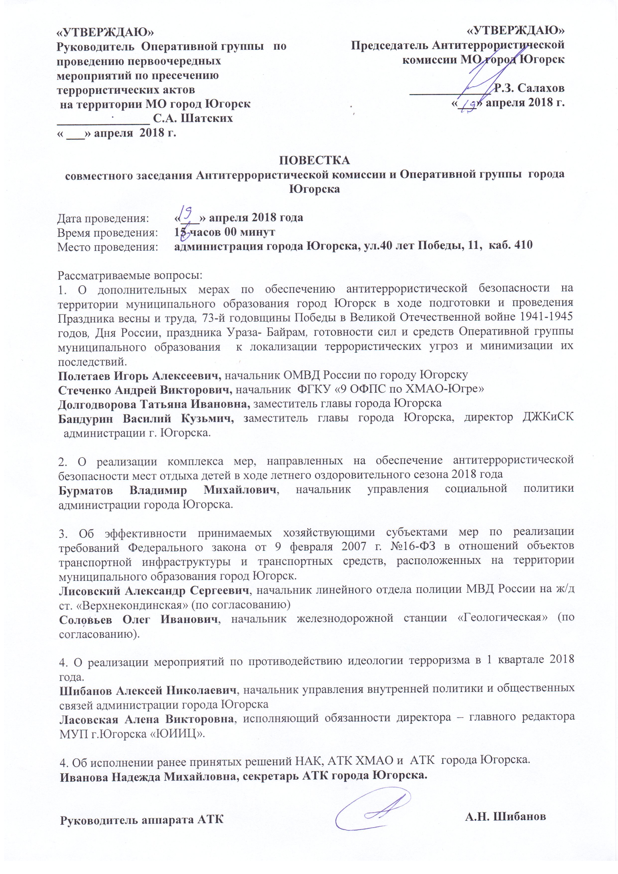 Заседание антитеррористической комиссии и оперативной группы