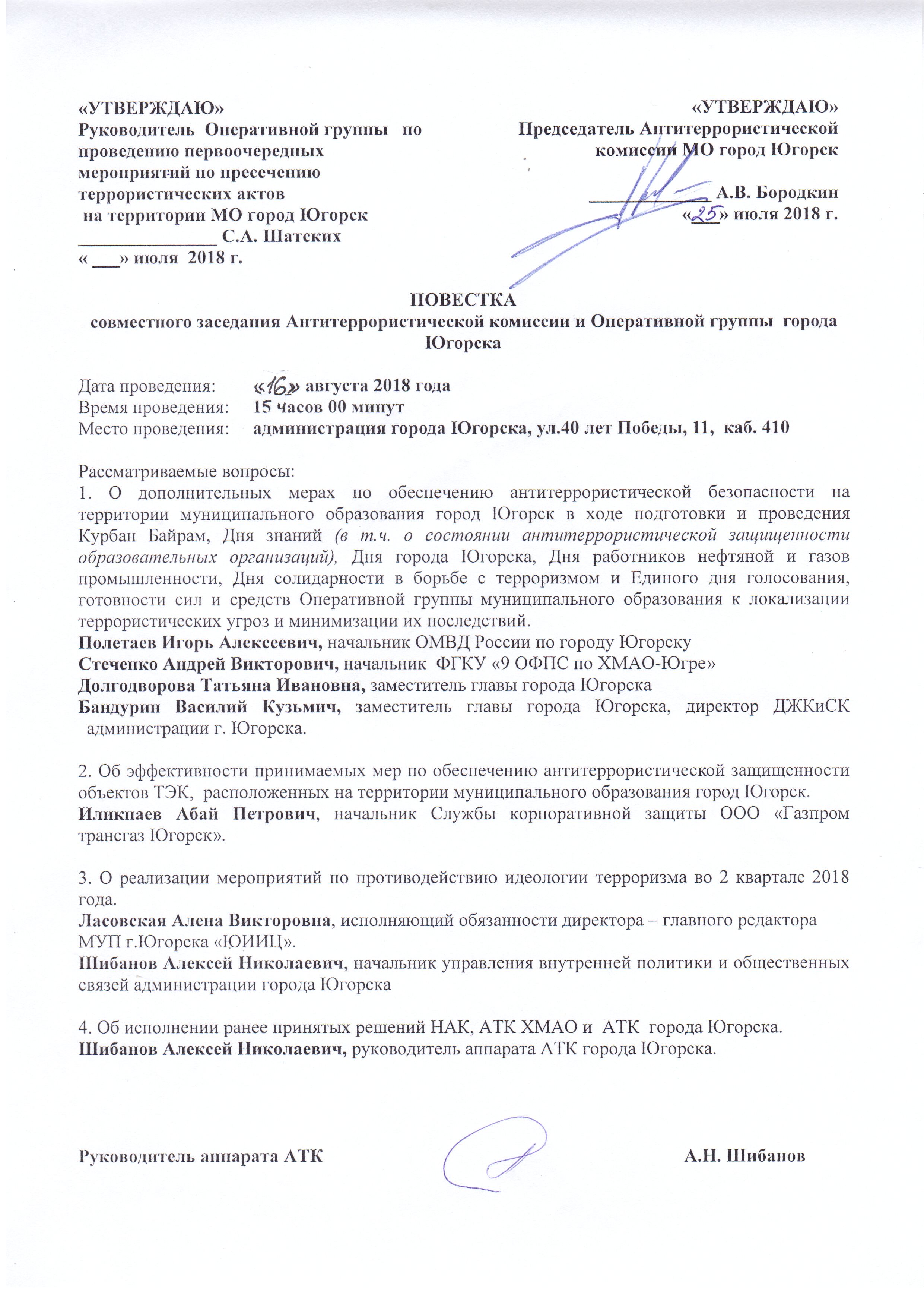 Заседание антитеррористической комиссии и оперативной группы