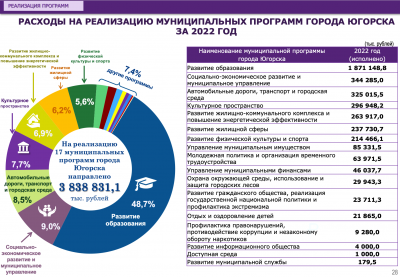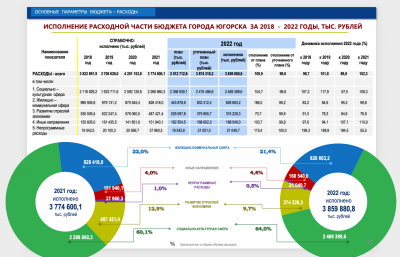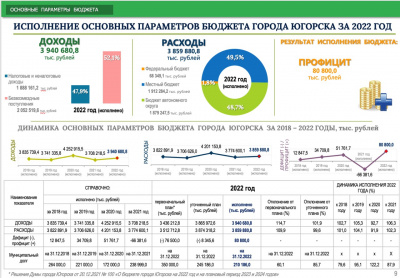 Расходы бюджета города Югорска в 2022 году составили 3,8 млрд. рублей, что на 85,2 млн. рублей больше, чем в 2021 году.