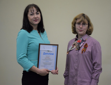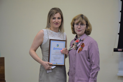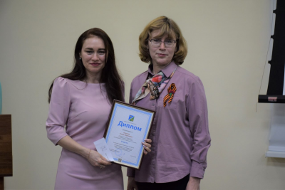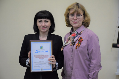 Дипломом главы города Югорска с вручением премии в сумме 5000 тысяч рублей за 3 место награждается – специалист по охране труда лицея им. Г.Ф. Атякшева Липатова Ирина.