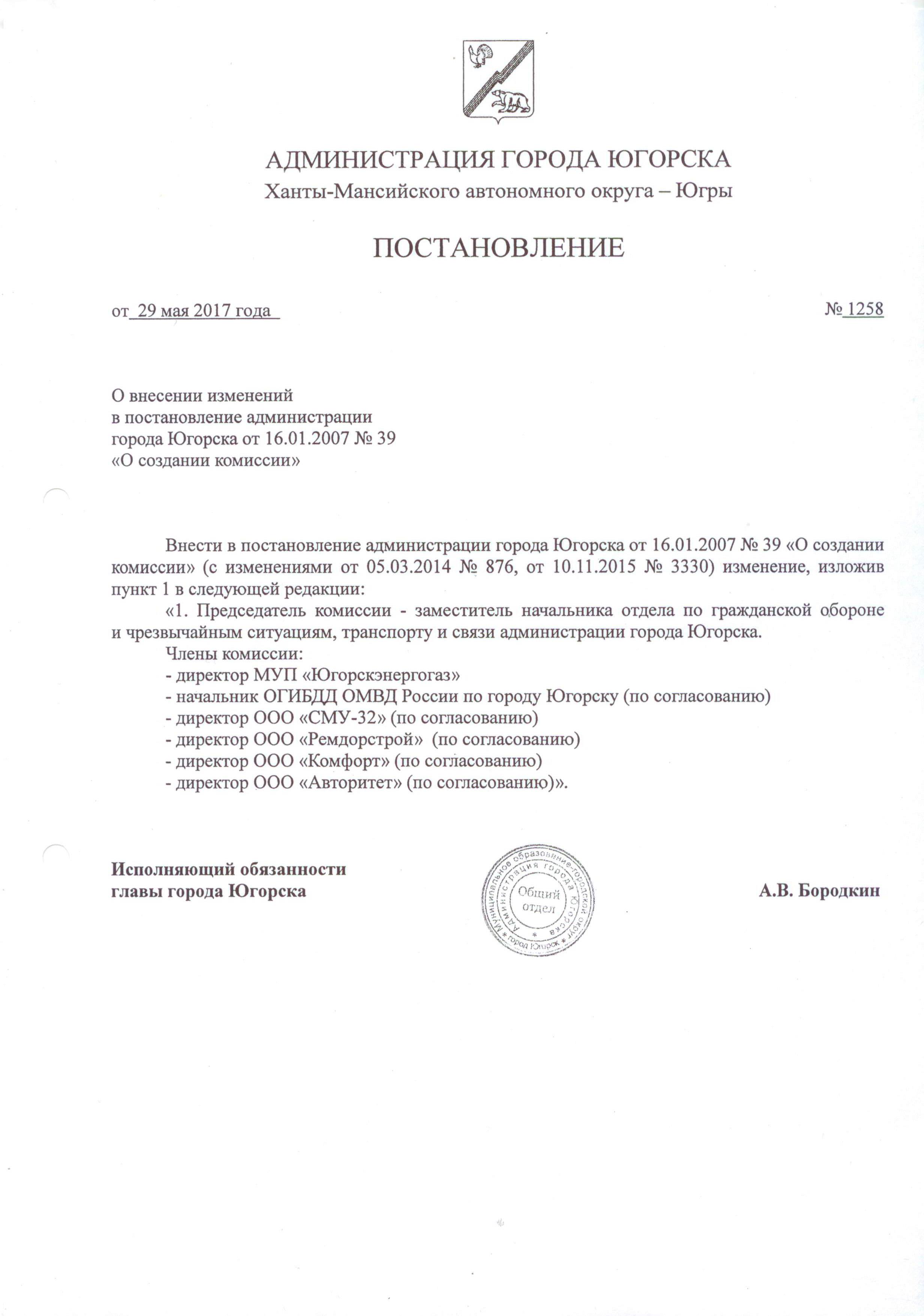 О внесении изменений в постановление администрации города Югорска от 16.01.2007 № 39 «О создании комиссии» |