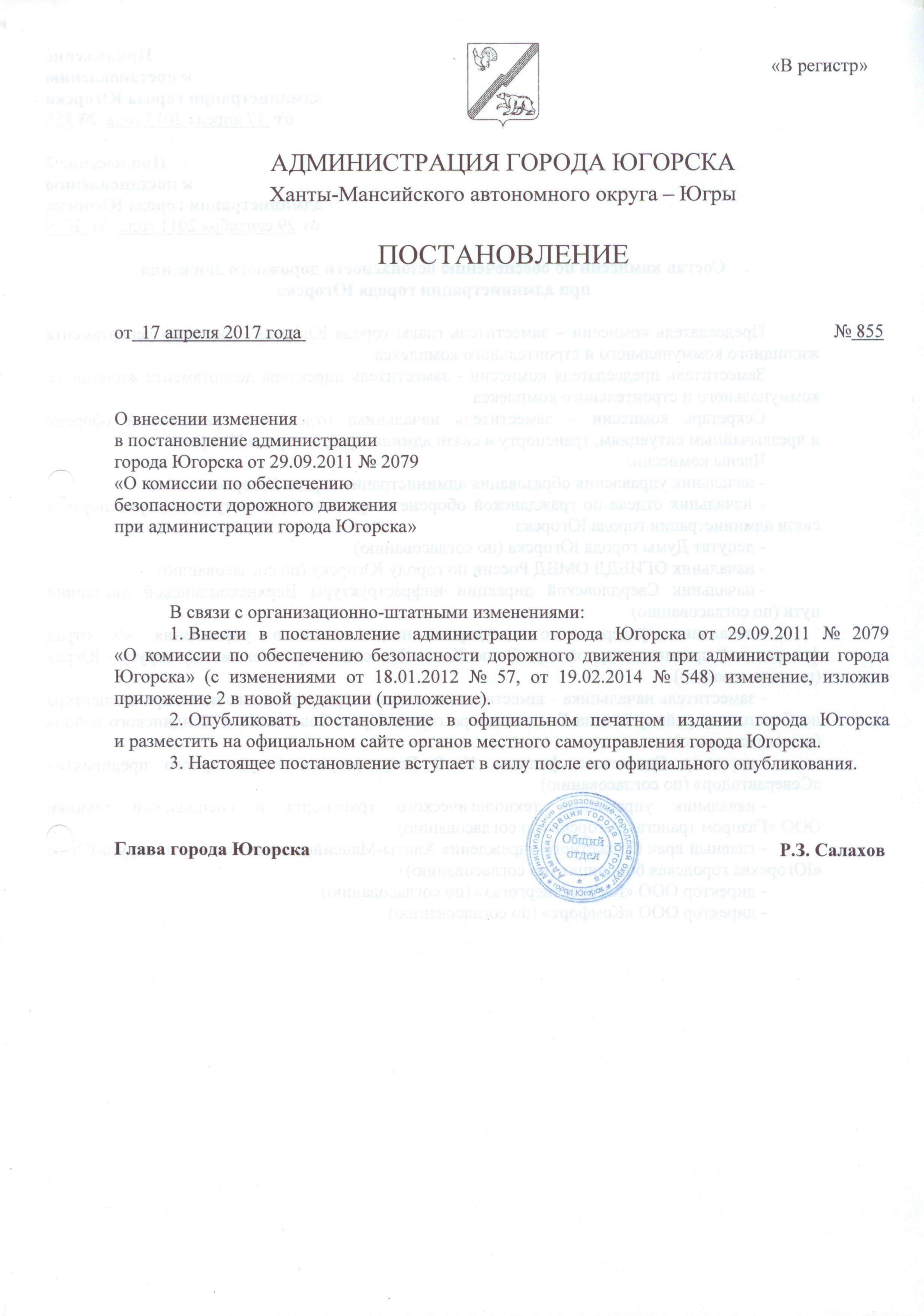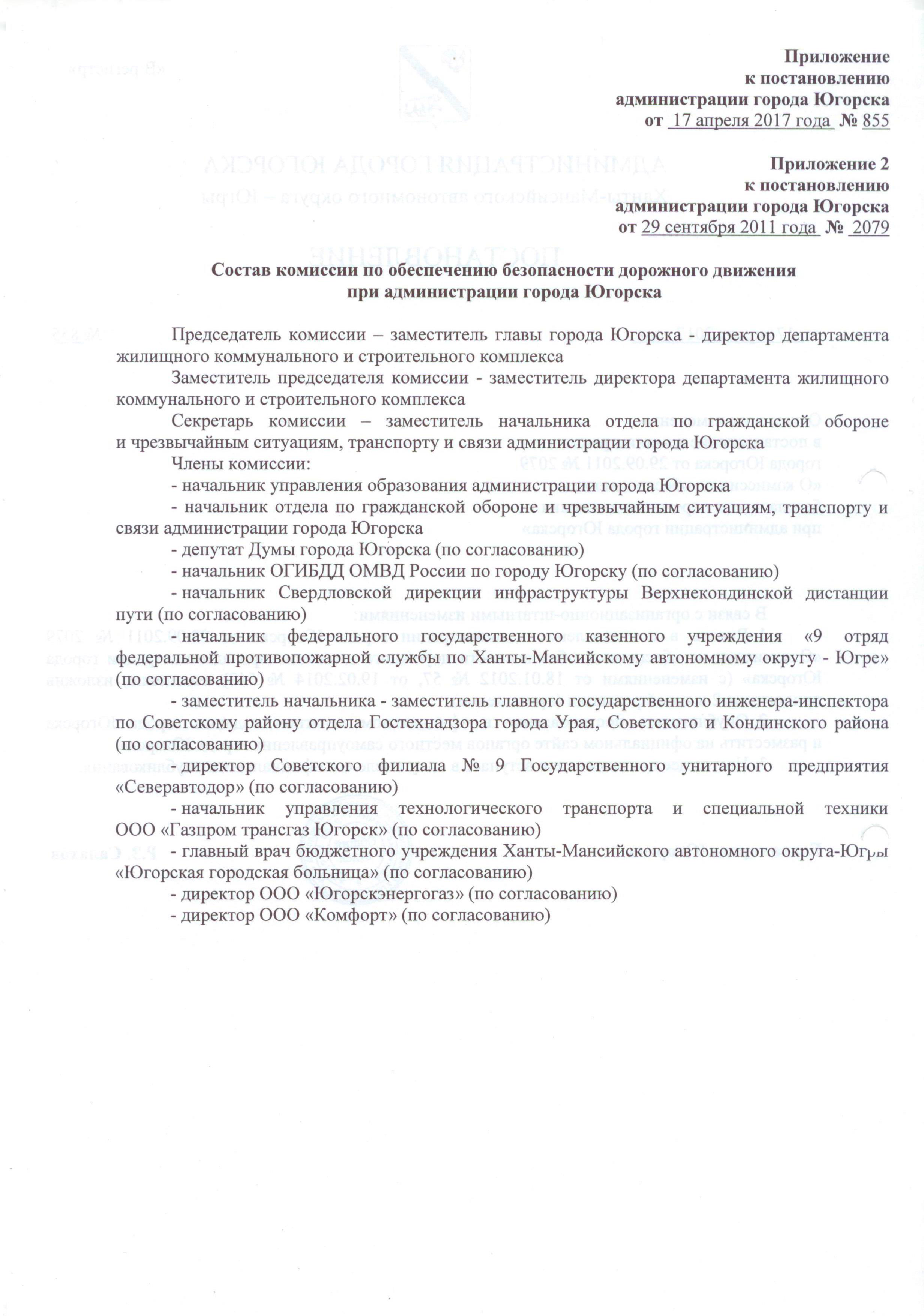 О внесении изменения в постановление администрации города Югорска от 29.09.2011 № 2079 «О комиссии по обеспечению безопасности дорожного движения при администрации города Югорска» |
