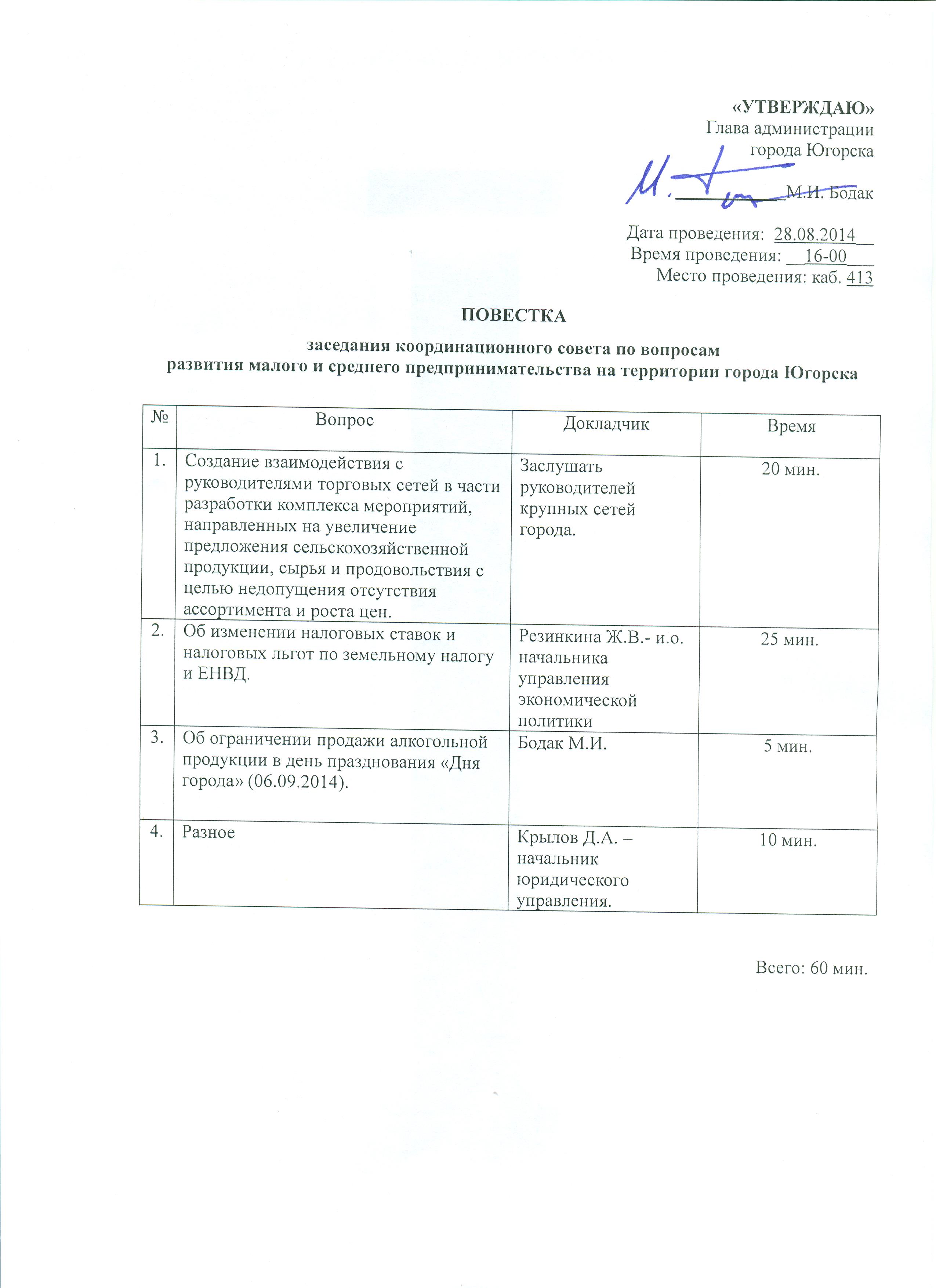 Повестка дня: