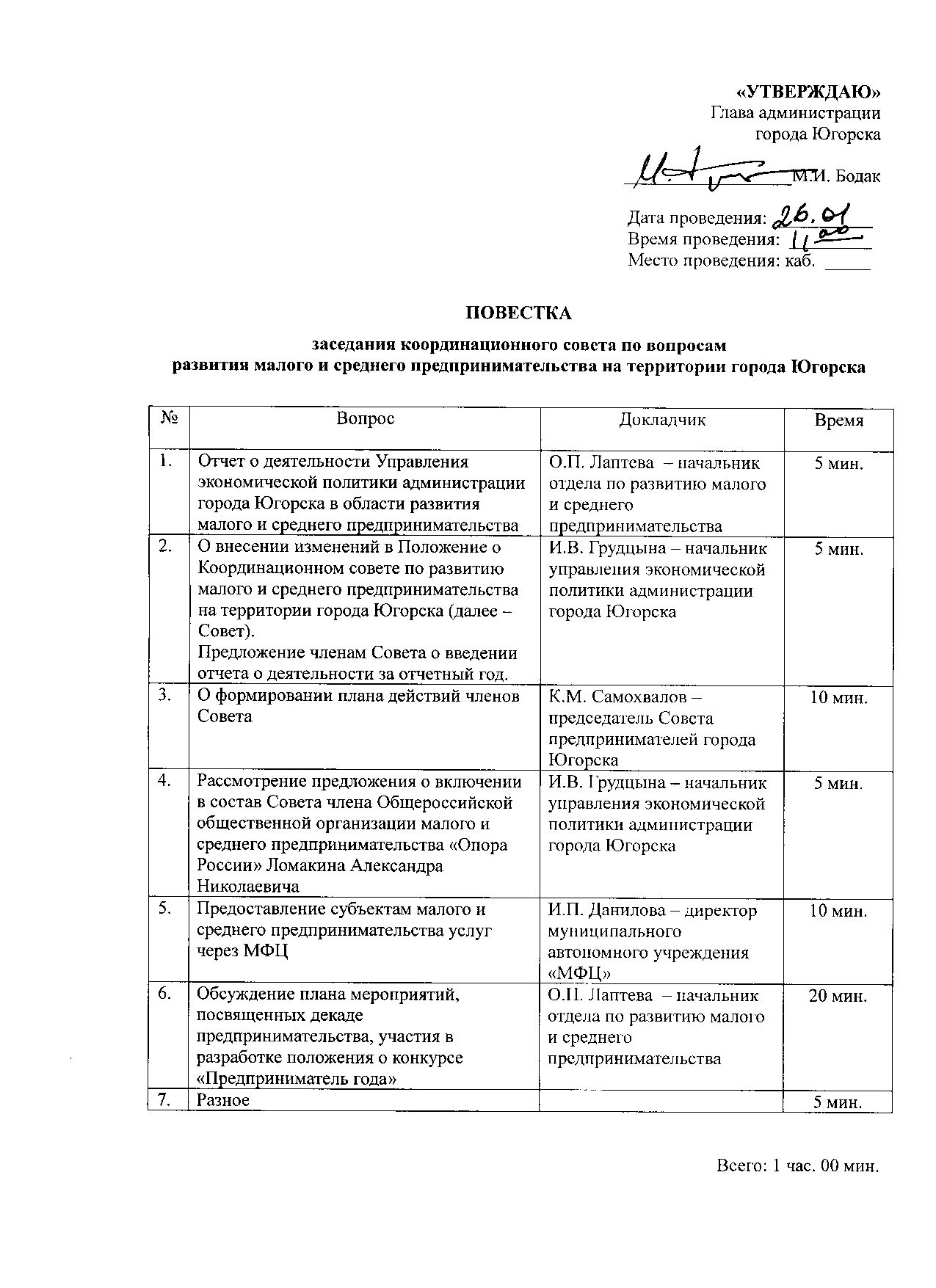 Повестка дня: