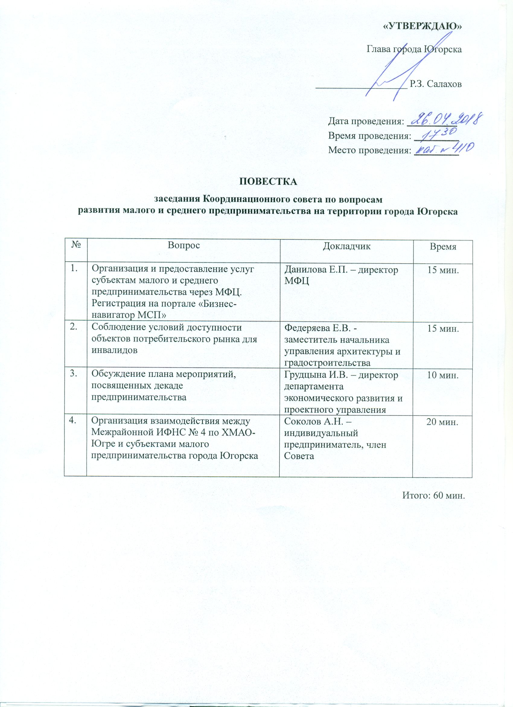 Повестка дня: