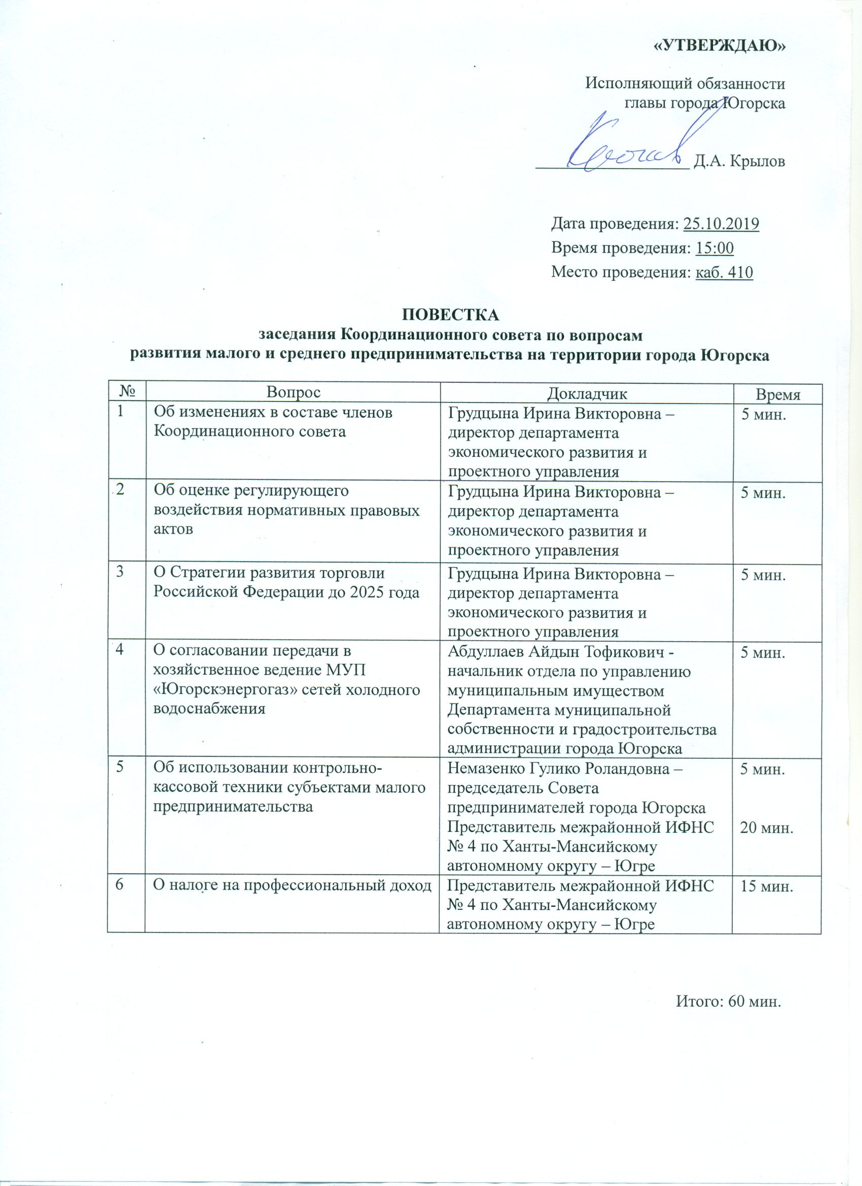 Повестка дня: