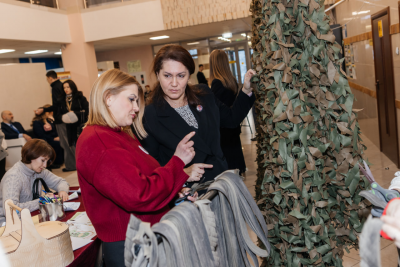 В атриуме гостей встречала живая музыка и выставка картин от Детской школы искусств, каждый желающий мог подписать «Весточку из дома» для бойцов в зоне СВО, а также принять участие в подготовке ленточек для плетения маскировочных сетей.